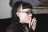 This video was shot at Coherent Light's studio, and on location in the girls apartment. Many thanks to Ed for the use of his facilities. We used studio lighting for this production. There is both natural audio and original music by Tommy. These three videos are an experiment to get a little public opinion. For a year now we have shot each scene with two video cameras, and for the last 4 months we have filmed each scene with 3 cameras...mixing all three angles/sides of each scene together. Surprisingly enough I have not heard one word in favor or in disdain of this way of producing vids. So for these three vids we have used all the scenes from one angle/side to make three seperate vids, esentially the same video, but showing each scene full/ close-up, or profile in its own video. You will meet Desmana, Samantha, Eva, Tina, and Staci (an adorable girl of asian heritage with braces). You will see Eva perform open mouth inhales and slow snaps. Staci shows us a few french inhales. Tina while only a social smoker performs well and toys with the smoke in slow drifts. We use digital video cameras to film all our videos. Every copy is made from a digital master, and is a first generation analog VHS copy of the master. This video is 1 hour and 15 minutes in length. You will see the girls enjoy VS 120's, VS 100, Marlboro 100's and Light 100's, B & H 100's, and Camel Light 100's. |